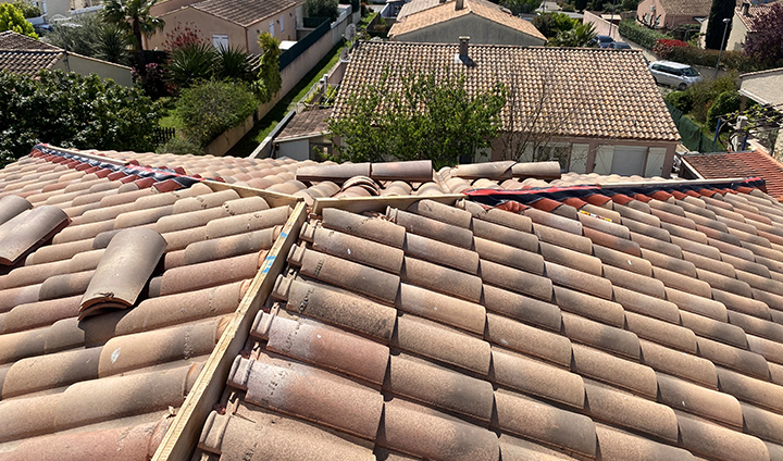 Rénovation complète d’une toiture ancienne sur une maison individuelle. Plusieurs points ont été traités : tuiles cassées, isolation dégradée, infiltration d’eau.